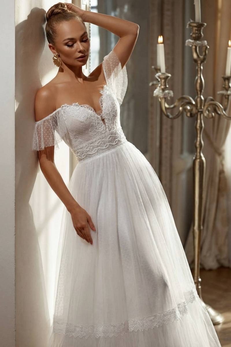 Подходят счастливым обладательницам фигуры «песочные часы». Бывают разной длины, нередко выполнены в виде трансформера и дополняются шлейфом.