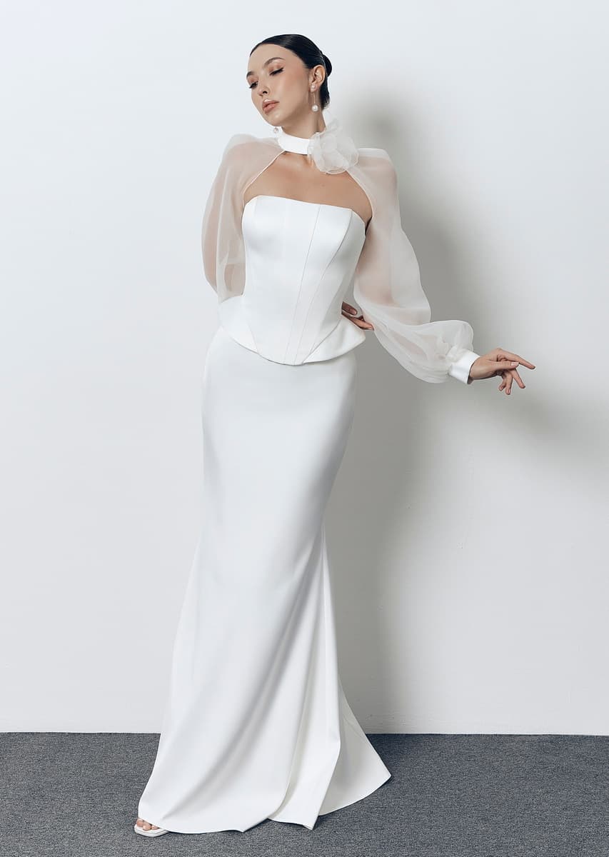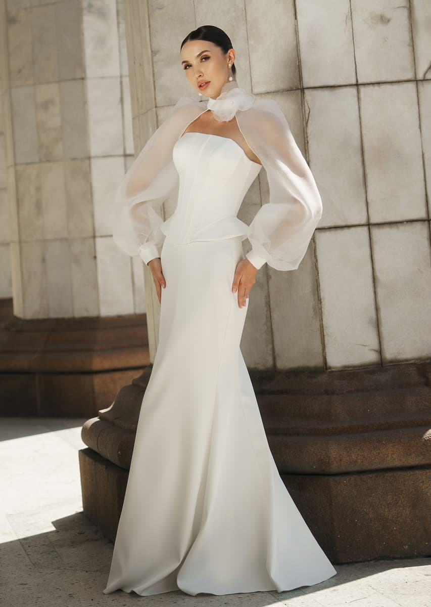 Стильный, элегантный свадебный комплект! Воздушные рукава с чекером придают платью изысканность и торжественность!