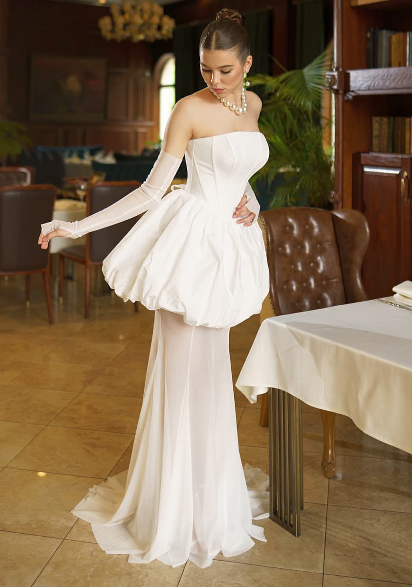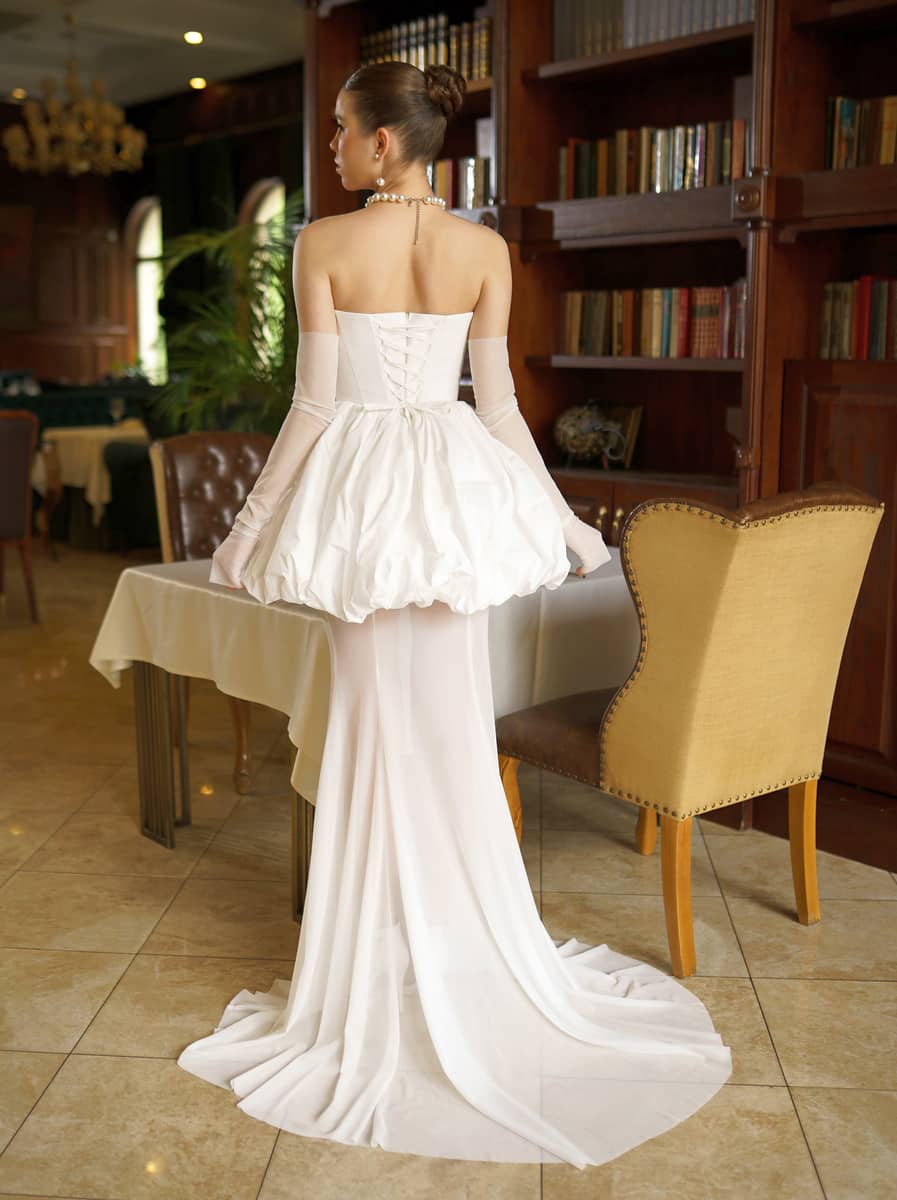 Свадебные платья — это не повседневная одежда и при подборе размера учитываются индивидуальные параметры (рост, объем груди, талии, бёдер и прочее). Для многих моделей порой требуются дополнительные замеры, такие как : размер чашки, обхват руки, ширина плеч и многое другое. Поэтому не стоит полагаться на информацию с размером, указанную на этикетке. Наши стилисты помогут Вам подобрать размер, который идеально сядет именно на Вашу фигуру.
