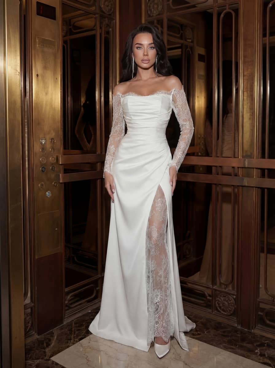 Элегантное платье в стиле «Рыбка» , романтичность образу придают кружева Шантильи!
